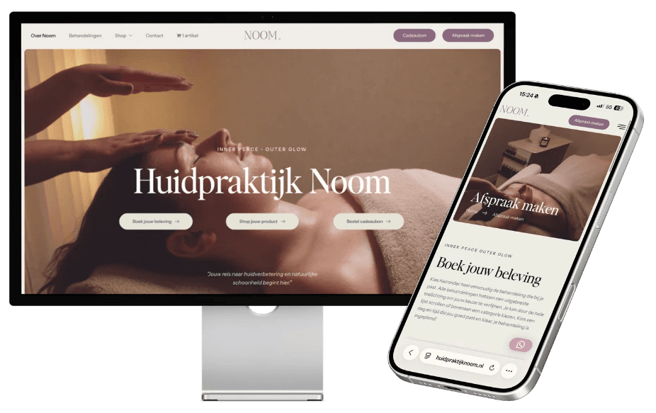 Voor Huidpraktijk Noom heeft Pearu een frisse en toegankelijke website gemaakt, die direct een rustige en professionele indruk geeft. De site is zo ingericht dat bezoekers snel kunnen zien welke behandelingen en producten er beschikbaar zijn, en wat de persoonlijke aanpak van Naomi Middag inhoudt. Met een duidelijke structuur, overzichtelijke teksten en een consistent ontwerp voelt de site prettig en vertrouwd aan. Bovendien is de website volledig responsive en technisch geoptimaliseerd, zodat iedereen eenvoudig informatie kan vinden en een afspraak kan maken, waar en wanneer dan ook.